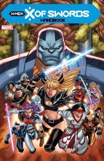 X of Swords: Handbook также содержит эксклюзивные иллюстрации, подробные профили героев, а также подробное описание их сил и способностей. Обложка комикса представляет собой уникальный рисунок с изображением всех героев, включая их имена, краткую биографию, а также систематизированные рубрики, отображающие их место в сюжете X of Swords.